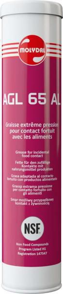 AGL 65 AL je vhodný pro mazání strojů v potravinářském průmyslu a to i při vysokých teplotách a vysokém zatížení. Je složen z bezpečných sloučenin. AGL 65 AL je ideální pro mazání hladkých ložisek, otočných čepů a ložisek pod vysokým zatížením v potravinářském průmyslu.