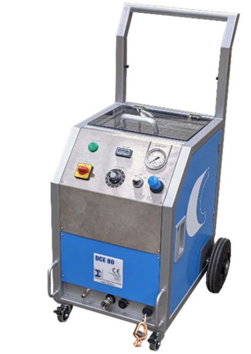 DCE 80 je kompaktní a mobilní tryskací zařízení se suchým ledem a praktickým systémem jedné hadice. Ten byl speciálně vyvinut tak, aby poskytoval mimořádně efektivní výsledky čištění i při silném znečištění, a to při nízké spotřebě suchého ledu.