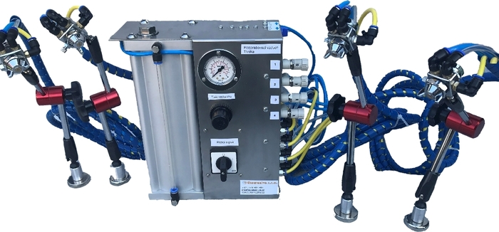 Systém je ovládán elektrickým signálem ze stroje.