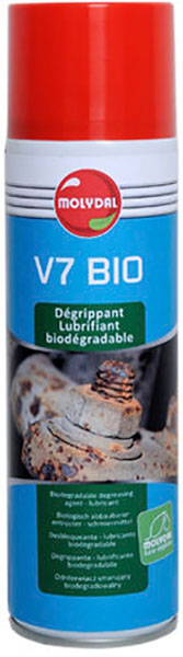 V7 BIO je biologicky odbouratelný mazací a uvolňovací prostředek s velmi nízkým povrchovým napětím, dále je antikorozivní, rychle působící, zabraňuje zadření závitů.